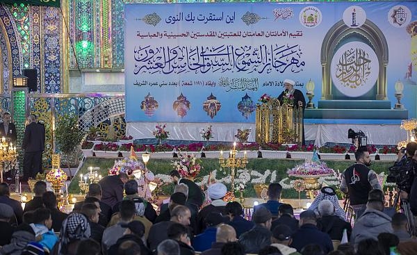 وأُقِيم المهرجان في باب القبلة لمرقد أبي الفضل العباس (عليه السلام) تحت شعار (أين استقرت بك النوى)، وبحضور مسؤولي العتبتَين المقدّستَينِ وشخصيات دينية ورسمية وجمعٍ غفير من الزائرين.