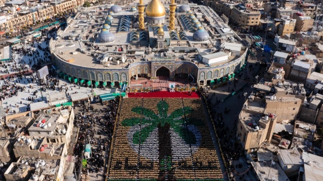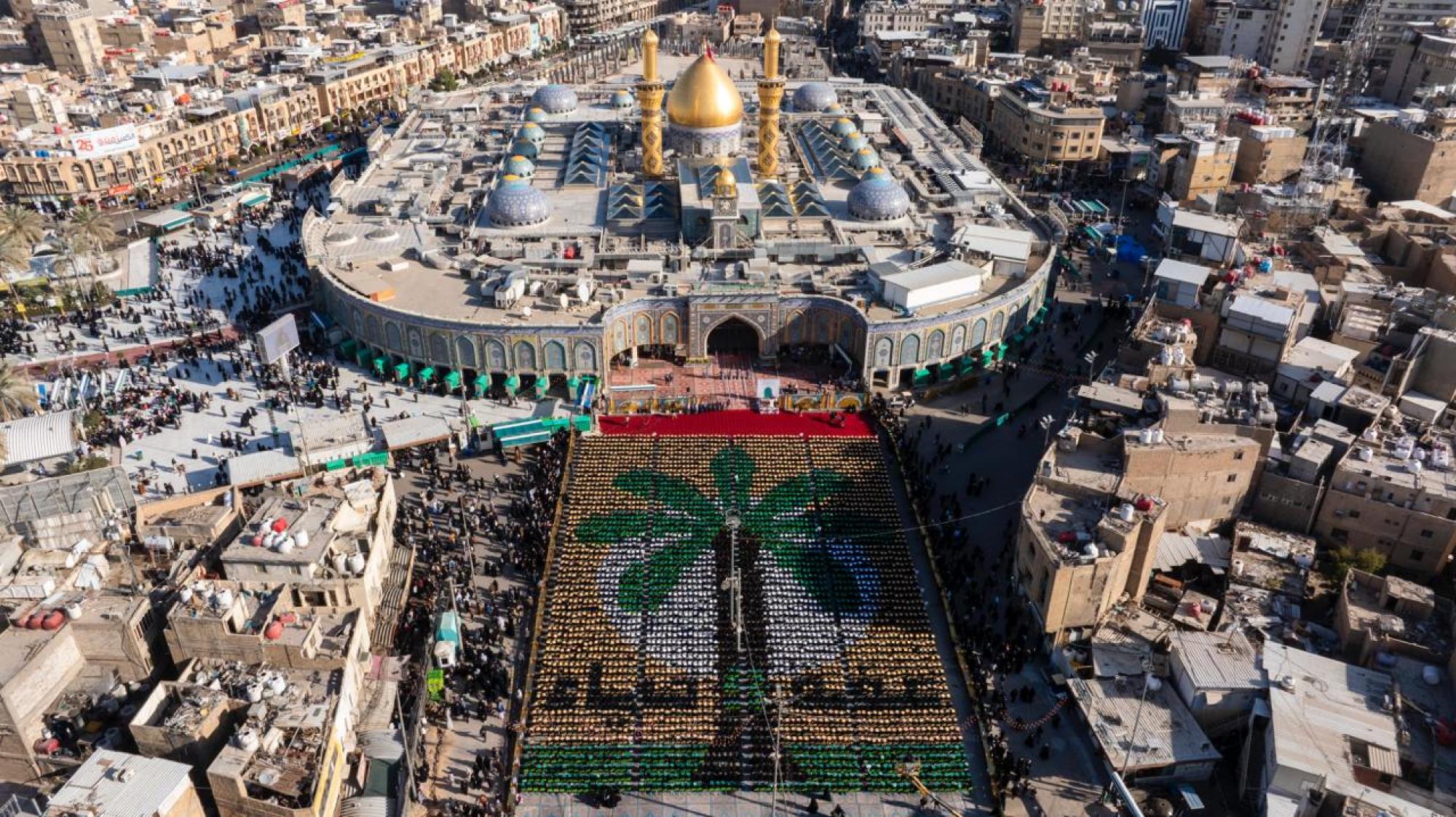 شكَّلت الطالبات الجامعيَّات المُشارِكات في حفل تخرج دفعة (بنات الكفيل) الثامن، رسمة نخلة عراقية للتعبير عن رمزيتها ولتجديد العهد بالانتماء للوطن.