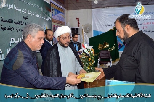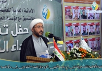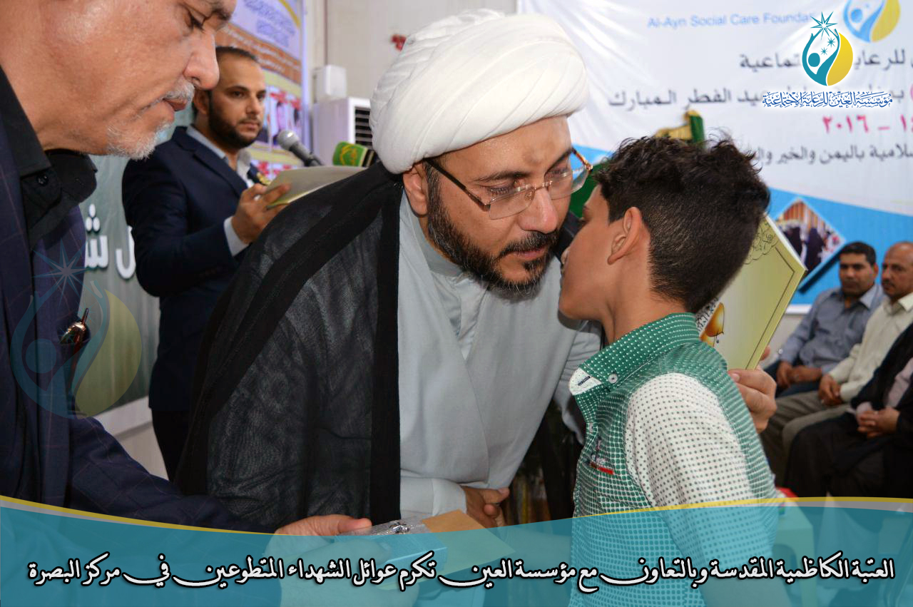 حيث افتتح الحفل بآيات الذكر الحكيم لأحد قراء العتبة المقدسة، تحدث بعدها سماحة المشرف على فرع المؤسسة الشيخ محمد البصري (دام عزه) عن دور المؤسسة في رعاية عوائل الشهداء المتطوعين والدور الكبير الذي تلعبه المرجعية وتوجيهاتها المستمرة بضرورة رعاية هذه الشريحة وتقديم أفضل سبل الرعاية لهم، تلتها كلمة العتبة المقدسة ألقاها سماحة الشيخ عماد الكاظمي (دام عزه)، عرض بعدها فلم يجسد بطولات إحدى أمهات الشهداء والتي فقدت ثمانية من أولادها في معارك مختلفة لتضرب مثلا للمرأة الصابرة المضحية .