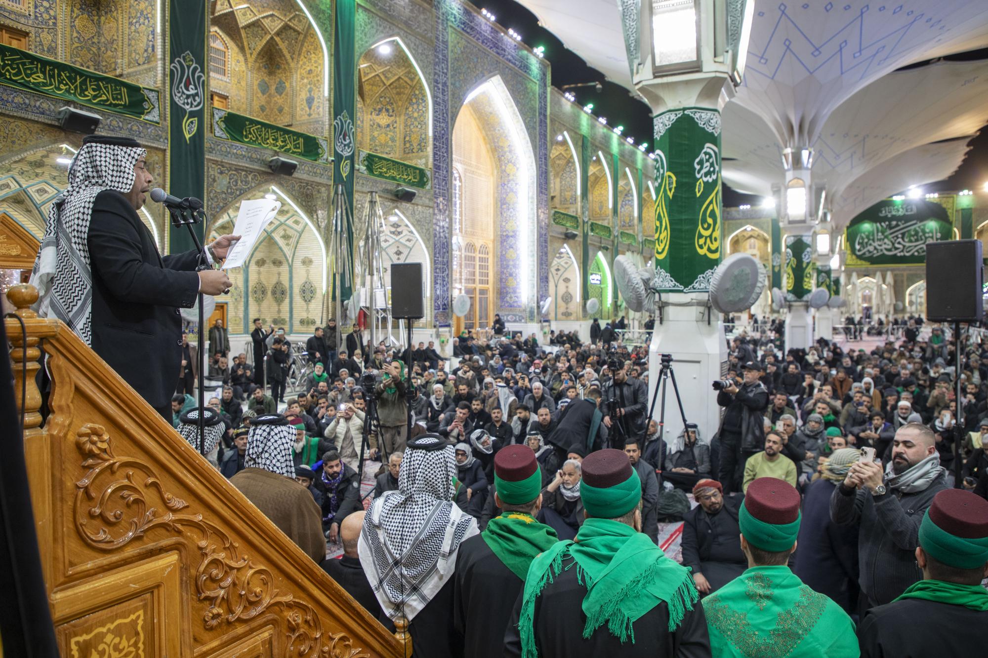وقال أحد منتسبي شعبة السادة الخدم التابعة للعتبة العباسية المقدسة، السيد بدري ماميثة، إنَّ "موكب أهالي كربلاء المقدسة انطلق إلى مرقد أمير المؤمنين الإمام علي بن أبي طالب (عليه السلام) في محافظة النجف الأشرف، لتعزيته بمناسبة ذكرى أربعين السيدة زينب (عليها السلام)".