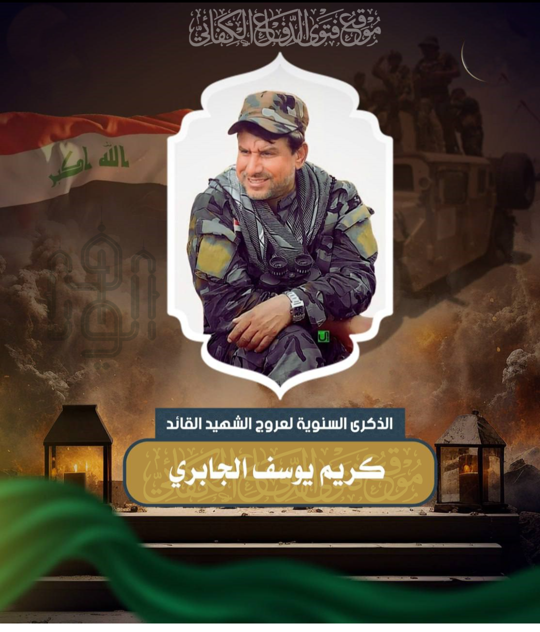 بكل فخر واعتزاز، نستذكر اليوم الذكرى السنوية العاشرة لعروج الشهيد القائد كريم يوسف الجابري (أبو وهب)، أحد رجالات العراق الأبطال الذين سطروا بدمائهم الزكية صفحات مشرقة من تاريخ الدفاع عن الوطن والمقدسات.