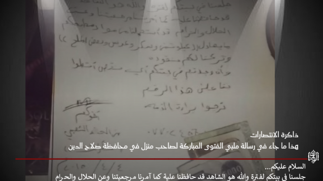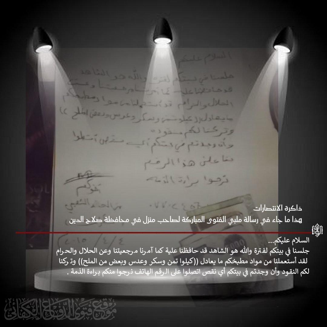 هذا ما جاء في رسالة ملبي الفتوى المباركة لصاحب منزل في محافظة صلاح الدين