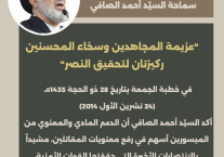هذا ما جاء في خطبة الجمعة التي القاها السيد احمد الصافي (دام عزه) في الصحن الحسيني الشريف في يوم 28 ذو الحجة 1435 هـ الموافق 24 / 10 / 2014م