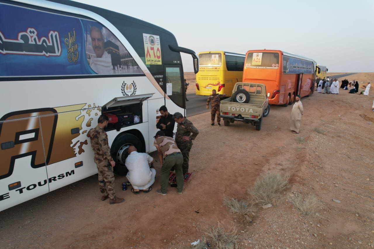 قدمت فرقة العباس القتالية دعماً فورياً لحجاج بيت الله الحرام التي تسلك الطريق البري، بعد تعطل إحدى حافلاتهم قرب المنفذ الحدودي.