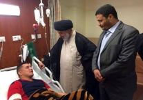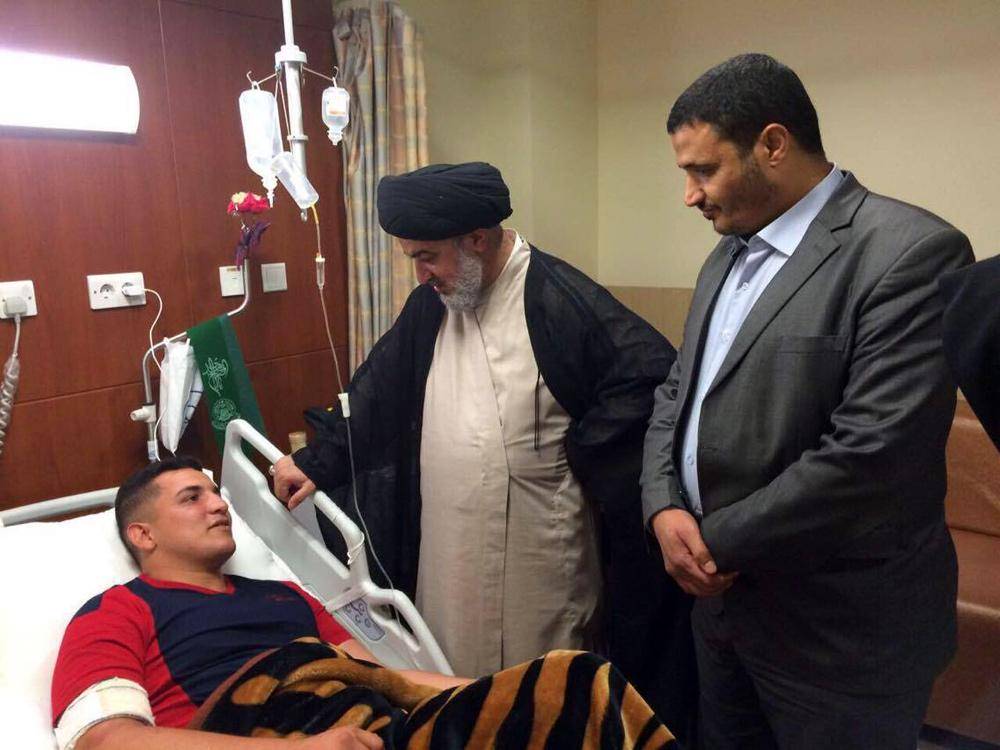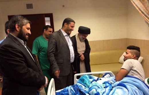 المتولي الشرعي للعتبة العباسية المقدسة والمشرف العام لفرقة العباس (عليه السلام) القتالية يتفقدون جرحى الحشد الشعبي الراقدين في مستشفى الكفيل..