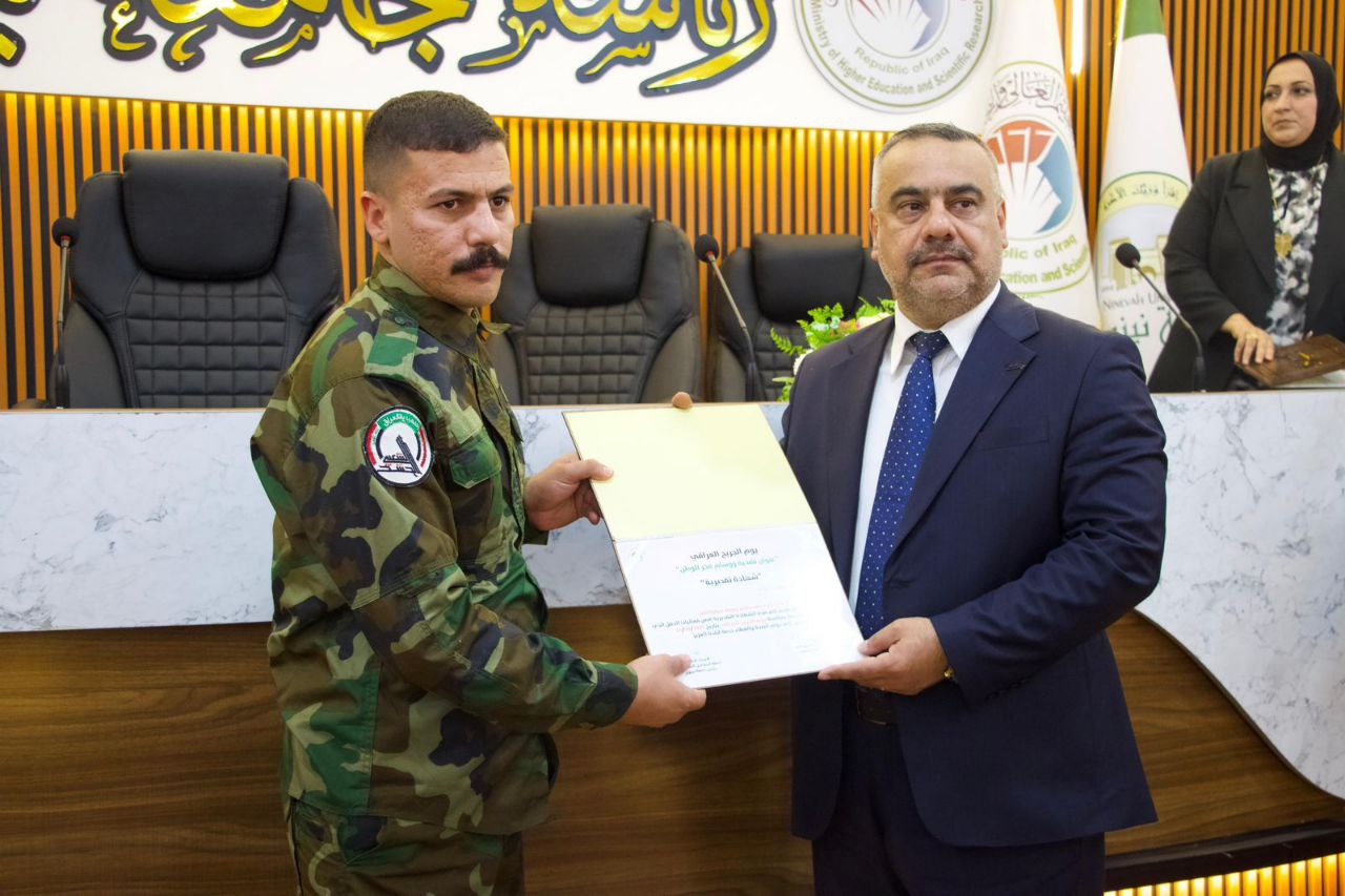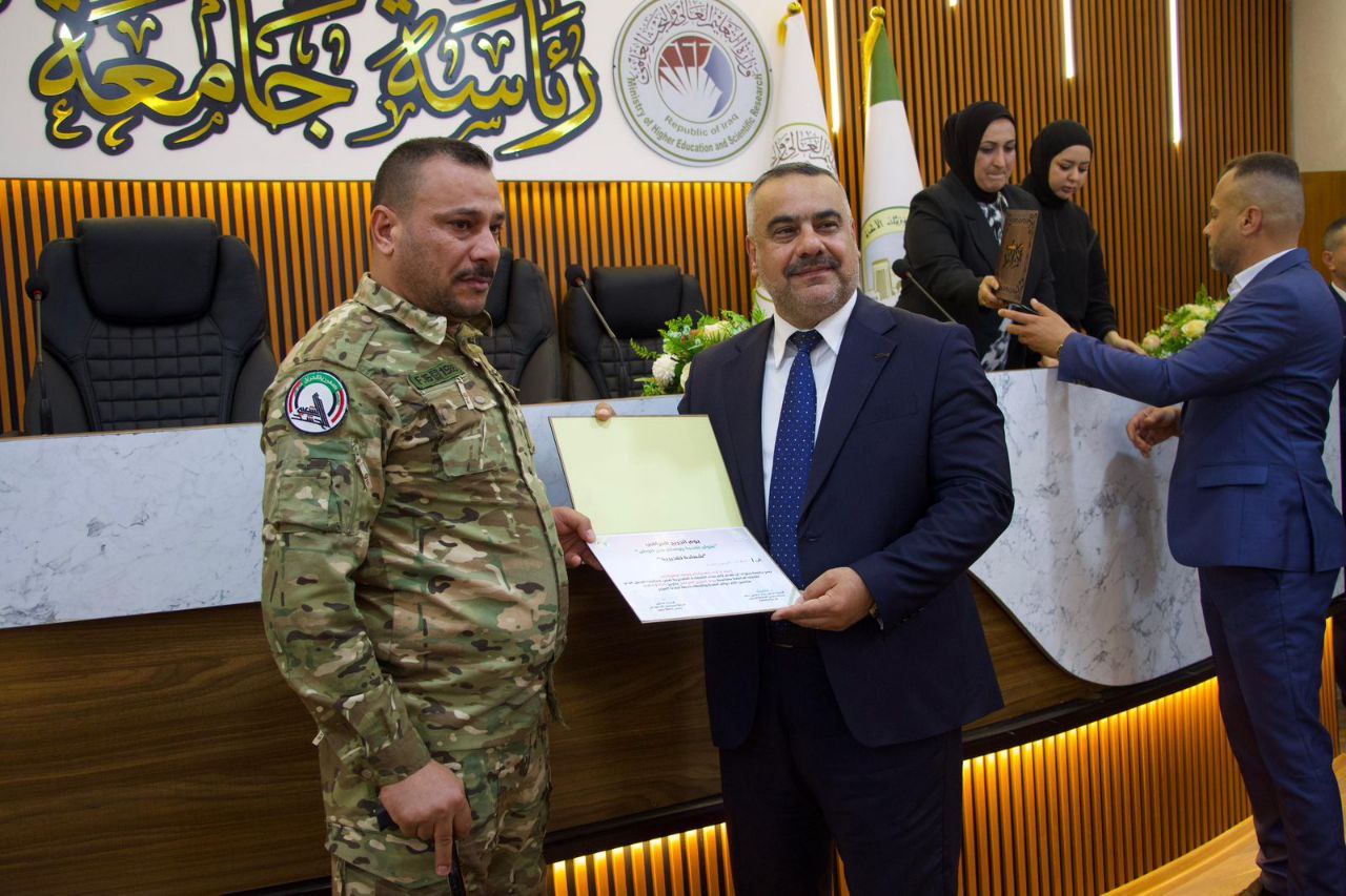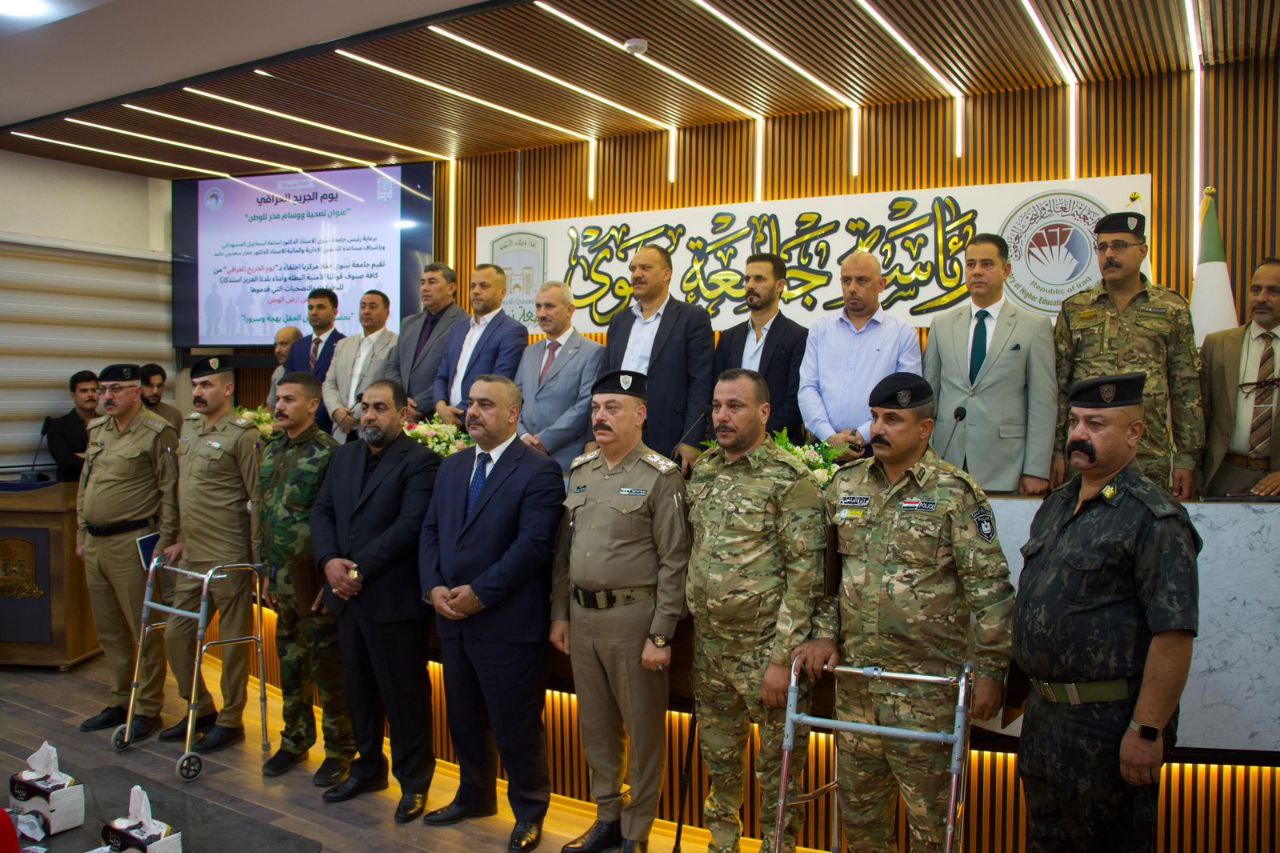 شهدت الاحتفالية التي أقيمت برعاية رئيس جامعة نينوى الدكتور أسامة إسماعيل المشهداني، تكريم عدد من جرحى الحشد الشعبي والقوات الأمنية، تقديرا لتضحياتهم الجسيمة في سبيل الوطن