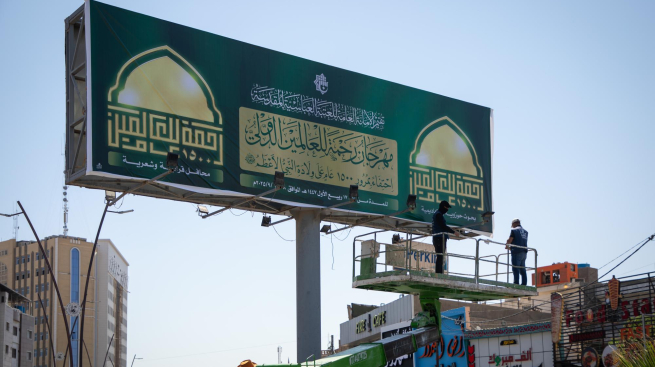 العتبة العباسية المقدسة تباشر بنشر اللافتات الخاصة بمهرجان رحمة للعالمين الدولي الأوّل