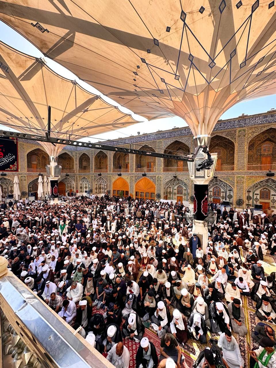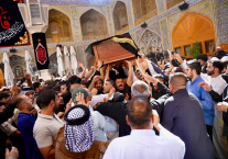 قيادة فرقة العباس تشارك في تشييع عقيلة المرجع الأعلى في النجف الأشرف