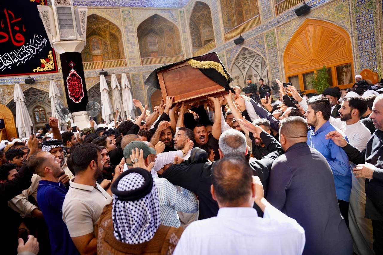 وانطلق موكب التشييع من جامع الشيخ الطوسي بحضور حشود غفيرة من العلماء وأساتذة وطلبة الحوزة العلمية وجموع المؤمنين، لِيُوارَى جثمانها الثرى قرب مرقد الإمام علي (عليه السلام).