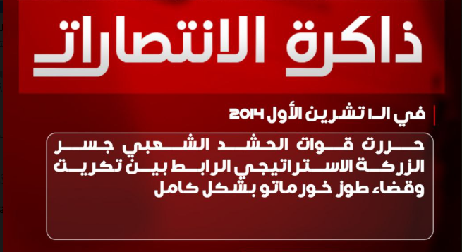 في الـ1 تشرين الأول 2014 حررت قوات الحشد الشعبي جسر الزركة الاستراتيجي الرابط بين تكريت وقضاء طوز خورماتو بشكل كامل