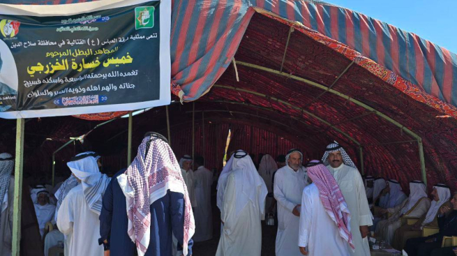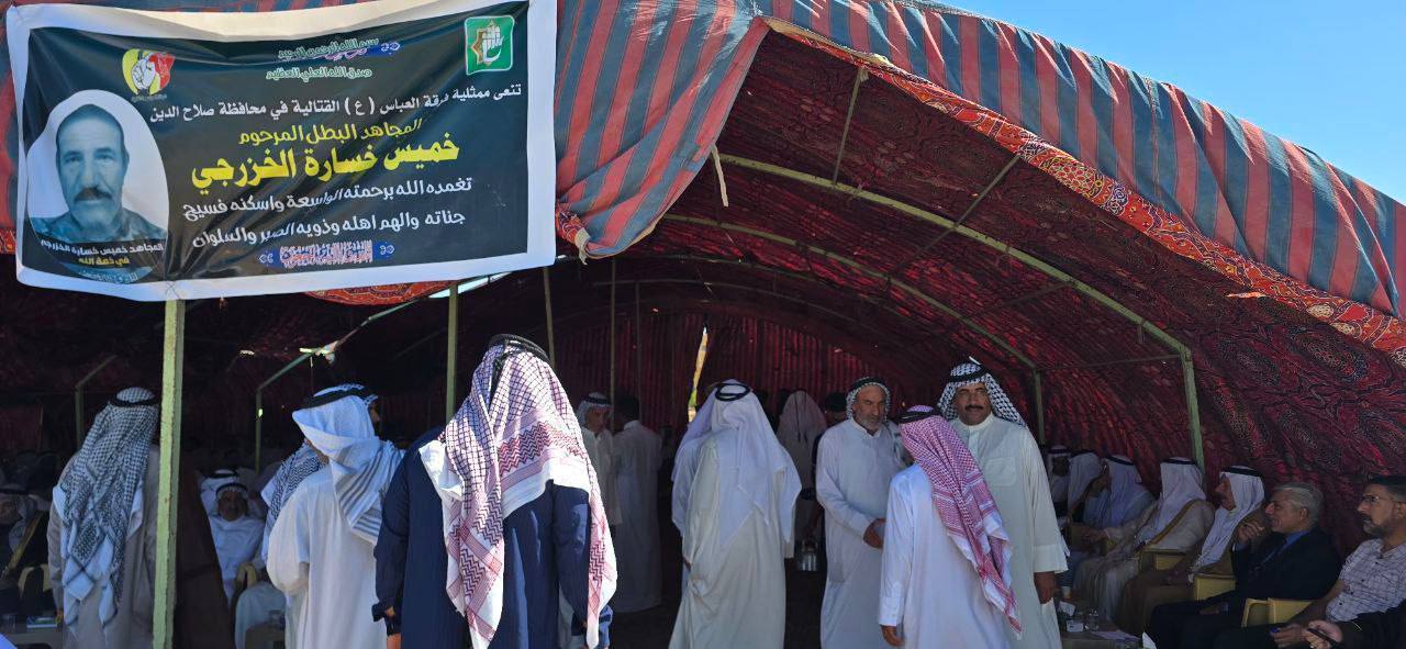 وجرت مراسم تقديم واجب العزاء في مجلس الفاتحة المقام في منطقة تل عثمان غرب مدينة الدجيل.