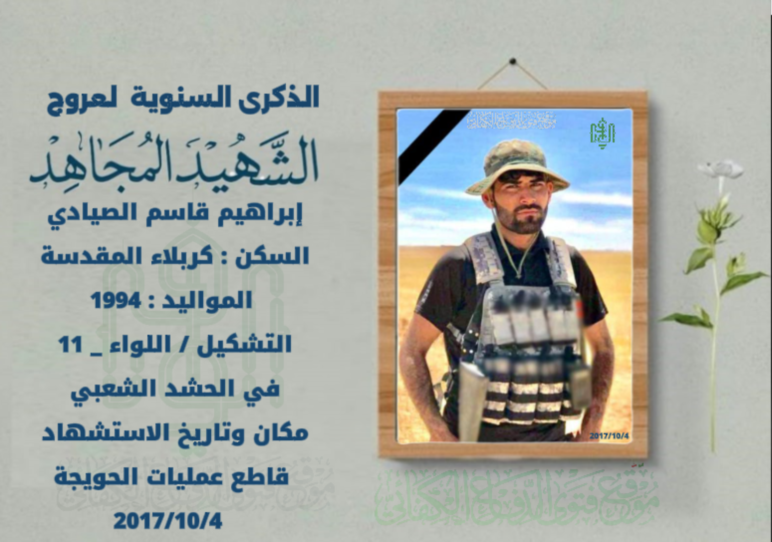 موقع فتوى الدفاع الكفائي يستذكر استشهاد المجاهد الكربلائي إبراهيم الصيادي