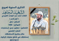 في مثل هذا اليوم.. ذكرى استشهاد احد أبناء بابل القائد احمد العبيدي