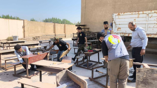 وجرت أعمال الصيانة والتأهيل بالتعاون مع مديرية تربية بابل، حيث تم التنسيق مع قسم الإدارة والتجهيزات في المديرية، وبعد اللقاء بمديره الدكتور مهدي جواد الطفيلي، باشر كادر المكتب برفقة عدد من المتطوعين بإصلاح المقاعد داخل مخازن القسم.