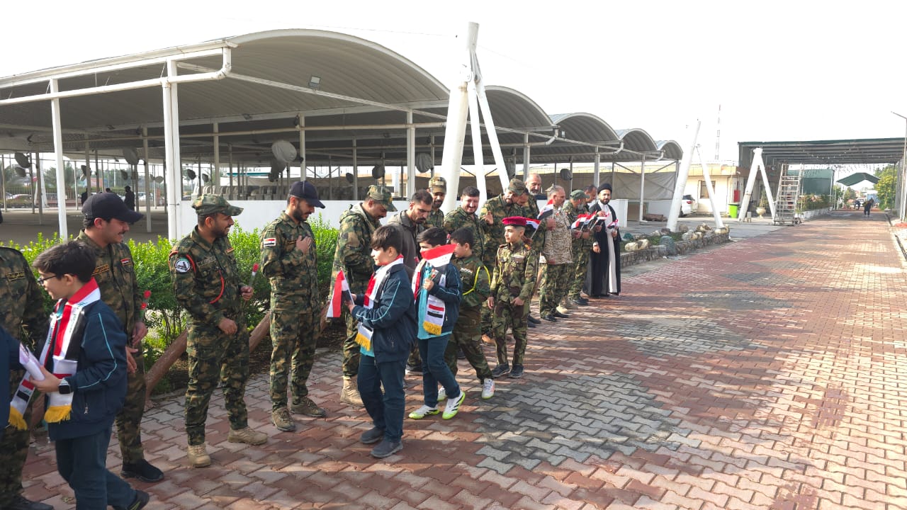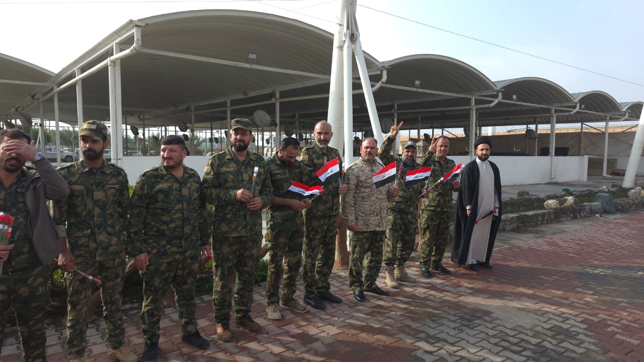 بالورود وأعلام العراق.. طلبة "العميد" يكرّمون فرسان الكفيل بذكرى يوم النصر