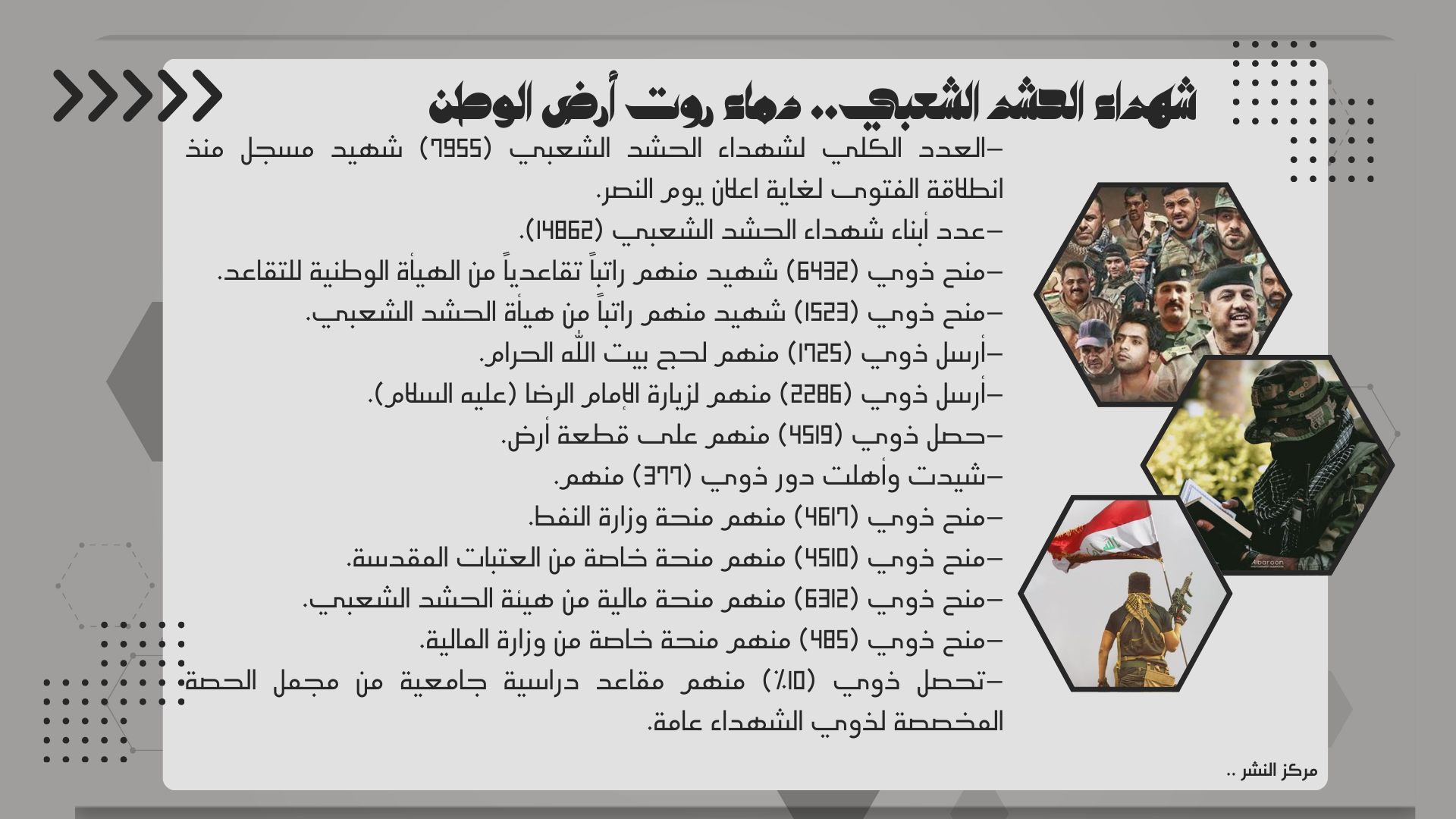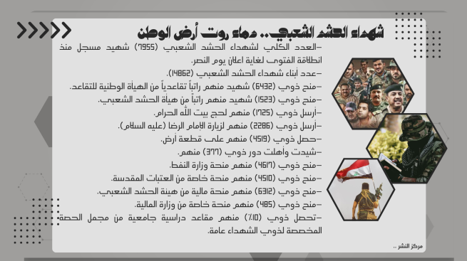منح ذوي (6312) شهيد منهم منحة مالية من هيئة الحشد الشعبي.