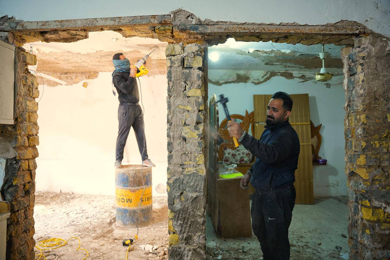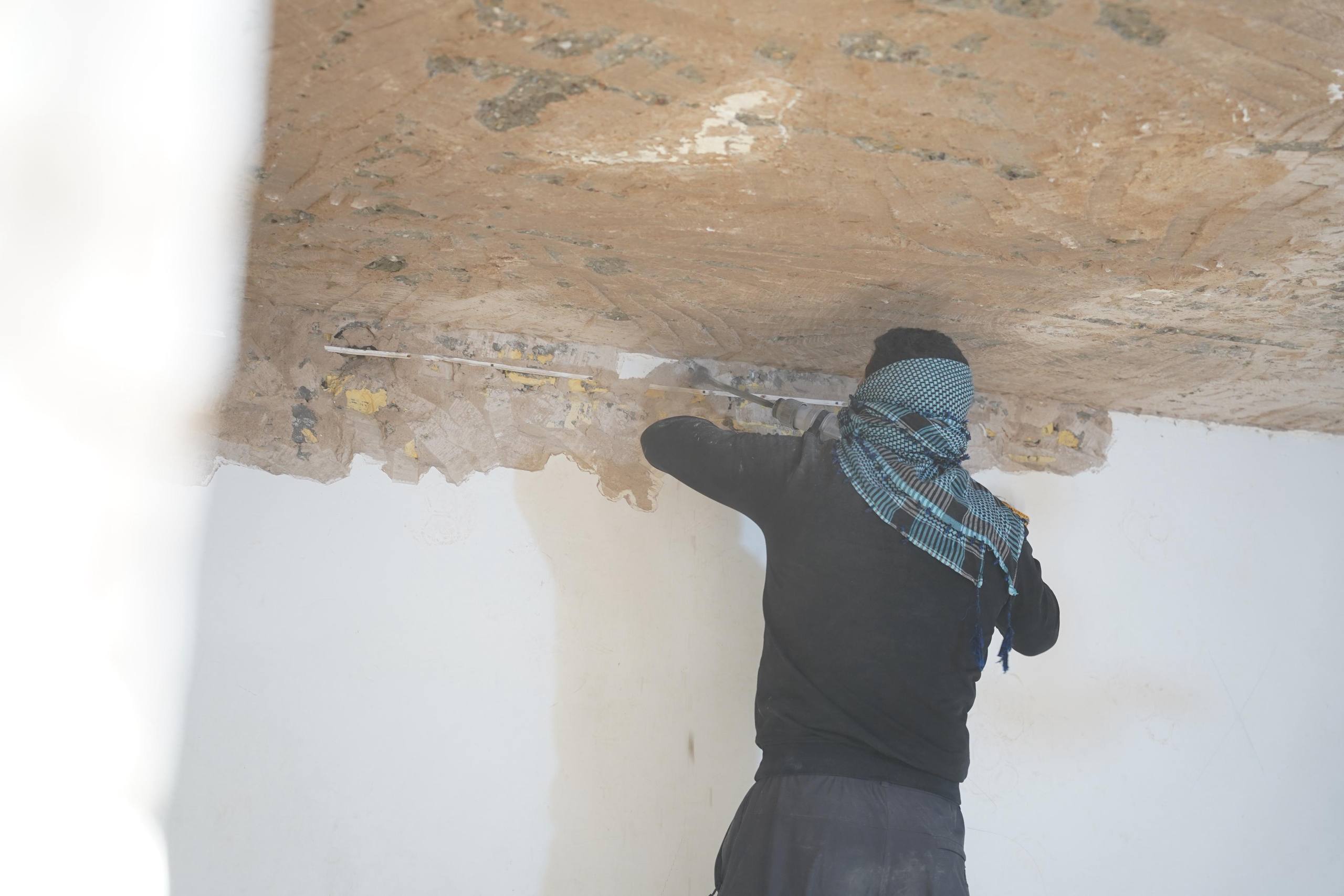 بالصور.. أبناء الفتوى المباركة يباشرون بترميم منزل صاحب المن