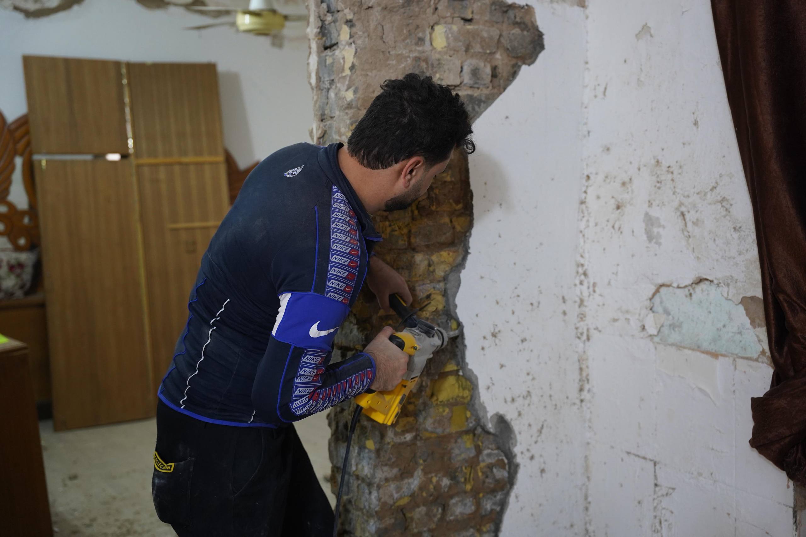 بالصور.. أبناء الفتوى المباركة يباشرون بترميم منزل صاحب المناشدة و فاءً لدماء الشهداء