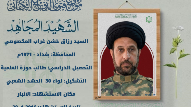 الشهيد السيّد رزاق خشن غراب المكصوصي لم يكن باحثًا عن مجدٍ شخصي ولا عن موقعٍ دنيوي، بل اختار طريق التضحية عن وعيٍ وبصيرة.