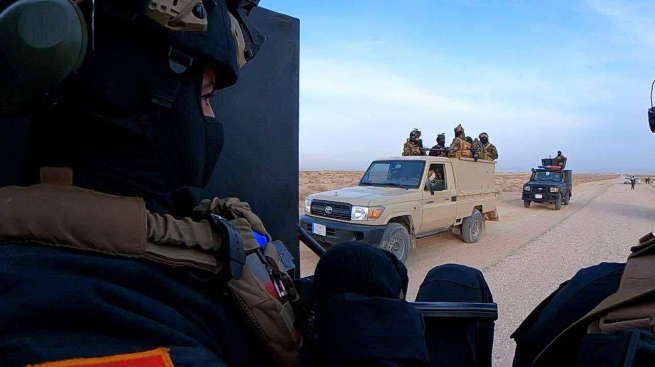 قوة مشتركة من الحشد والقوات الأمنية تنفذ عملية استطلاع شاملة في صحراء كربلاء لتأمين الزيارة الشعبانية
