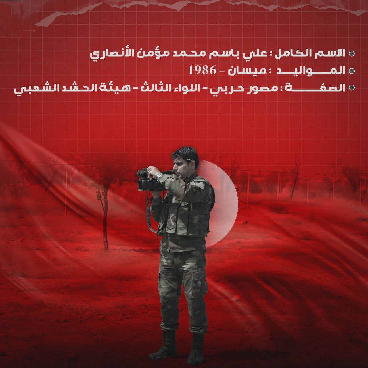 المصور الحربي الشهيد علي الأنصاري… عينُ المعركة وعدسةُ الحقيقة