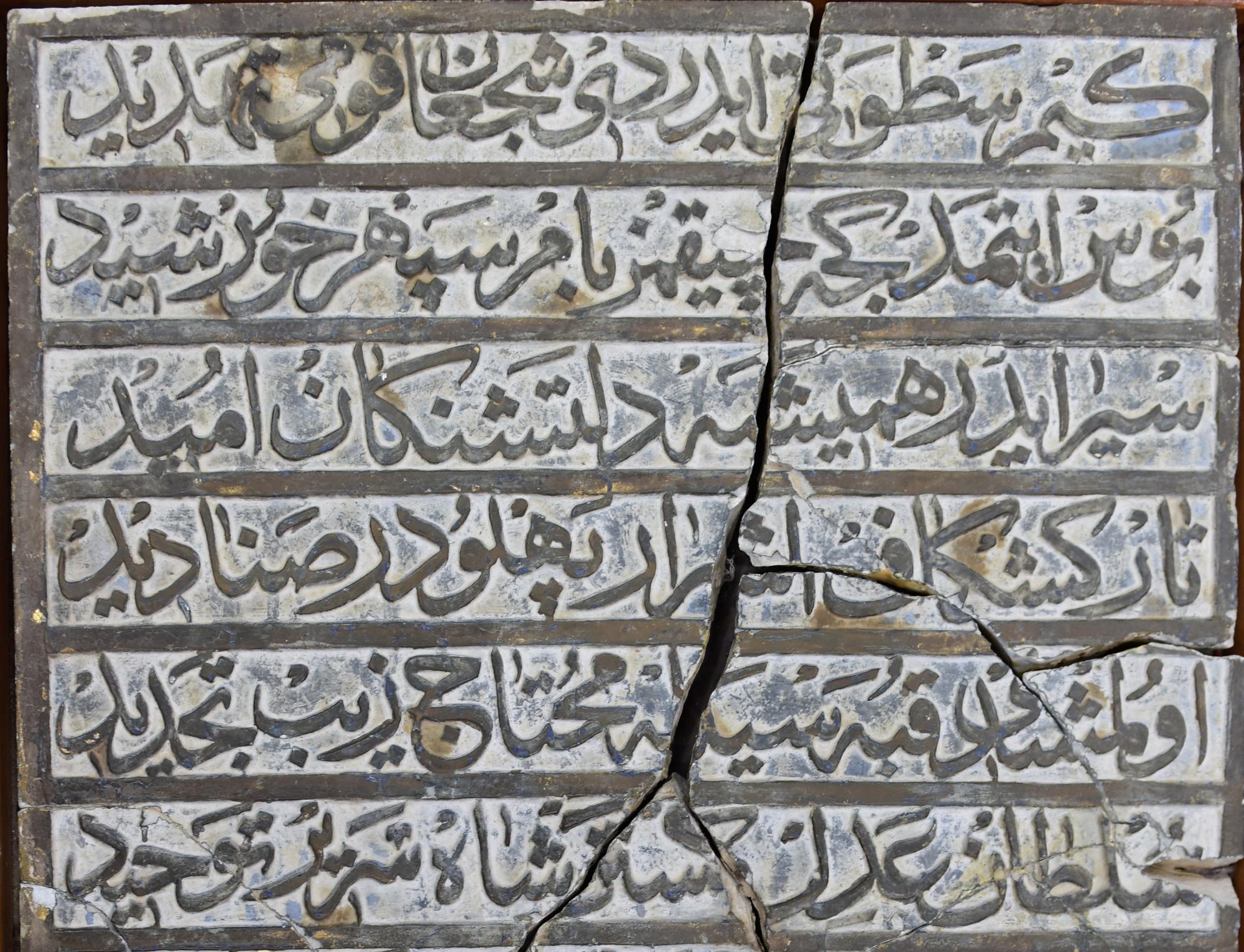 وتتمثل القطعتان الثانية والثالثة في لوحين من الرخام كانا مثبتين تحت الطغراء في الإيوان الذهبي عند جهة دخول الحرم المطهر، وتحمل كل منهما نصوصًا كتابية باللغة العثمانية نُفذت بأسلوب الحفر البارز، وتتضمن مجموعة أبيات شعرية، يُرجح أنّها كُتبت في سياق المدح لأبي الفضل العباس (عليه السلام)، إلى جانب نقوش زخرفية نباتية، وقد تعرضت هاتان القطعتان بدورهما إلى تلف شديد تمثل بكسور متعددة وفقدان أجزاء من مادتهما الأصلية في فترة الانتفاضة نفسها.