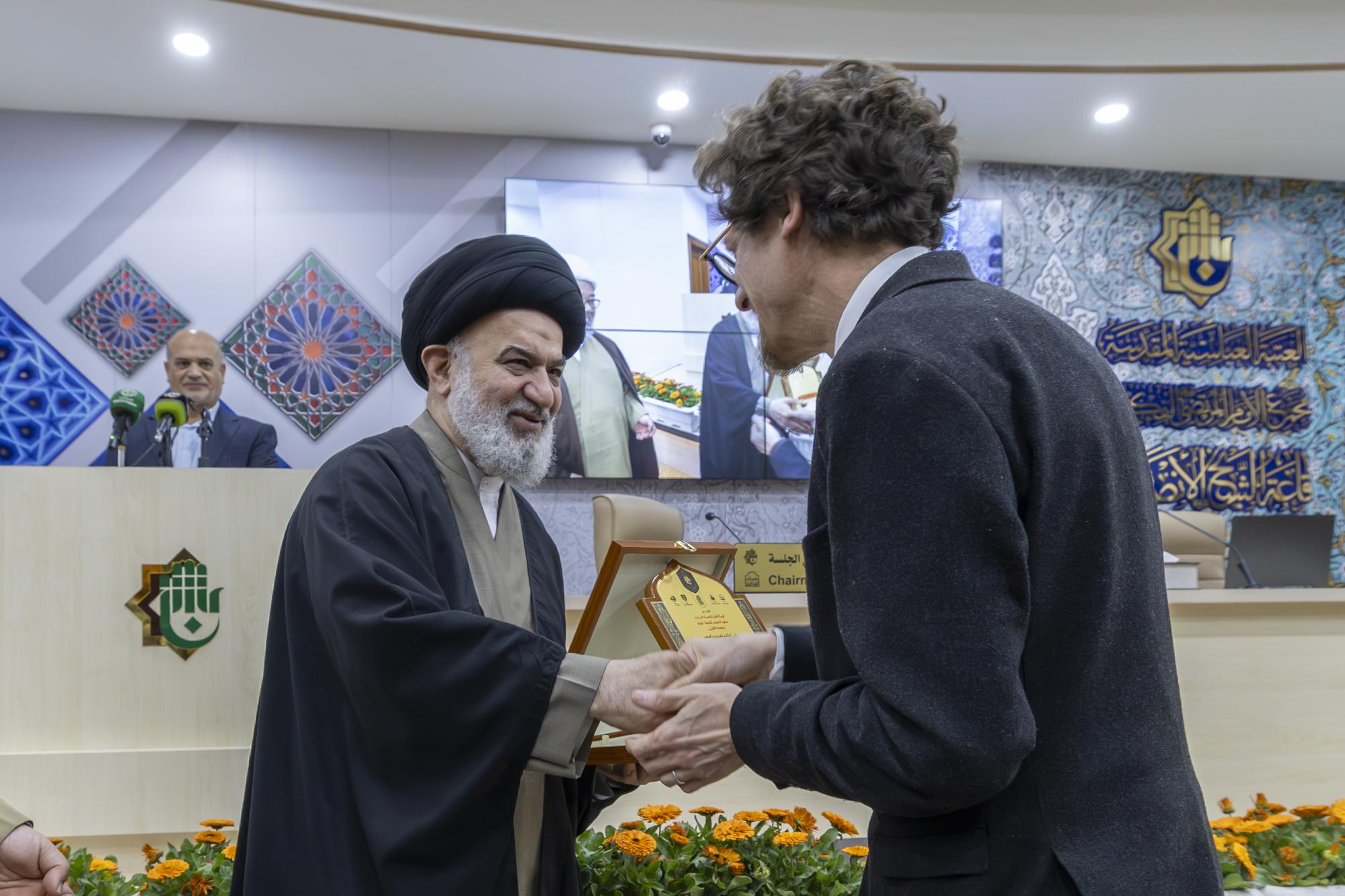 وشمل التكريم رئيسَ الجلسة الشيخ الدكتور حيدر السهلاني، والباحثَينِ سماحة السيد محمد جواد الشبيري الزنجاني أستاذ البحث الخارج في حوزة قمّ المقدّسة، والباحث الدكتور ماتيو تيرين مدير الدراسات في المدرسة التطبيقية للدراسات العُليا جامعة باريس للعلوم والآداب في فرنسا.