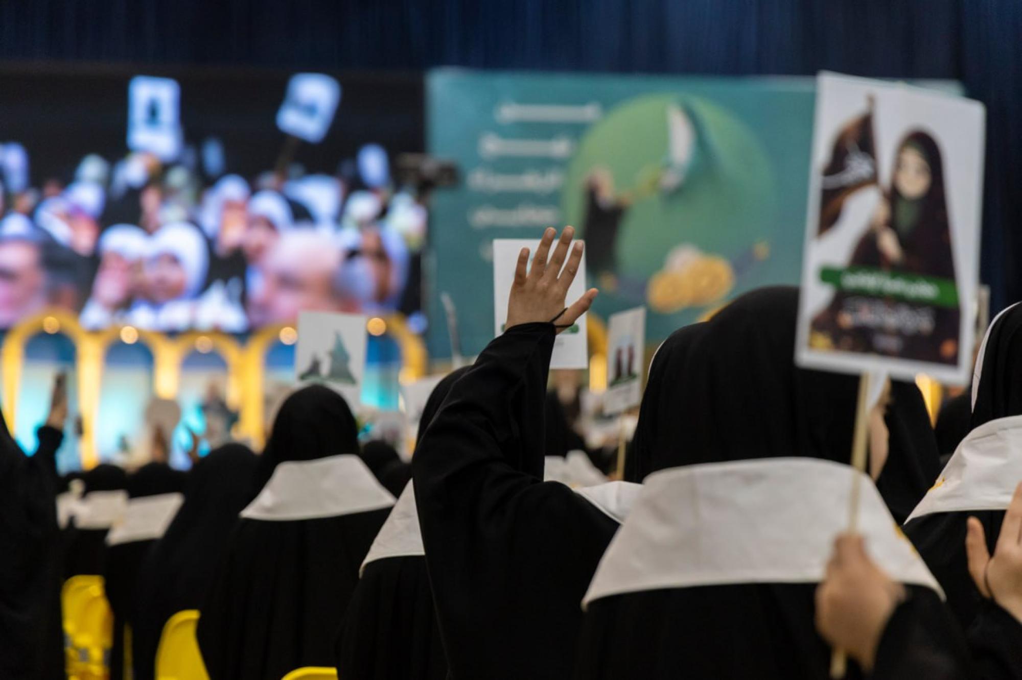 شهدت فعاليات اليوم الأول من حفل التكليف المركزي الثامن، ترديد تلميذات مدارس كربلاء عهد التكليف.