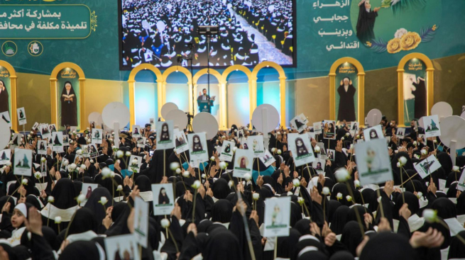 وتقيم الحفل شعبة الخطابة الحسينية النسوية التابعة لمكتب المتولي الشرعي للشؤون النسوية في العتبة المقدسة، بالتعاون مع مديرية تربية محافظة كربلاء، ضمن مشروع الورود الفاطمية، تحت شعار (من نهج الزهراء حجابي وبزينب اقتدائي)، وبمشاركة أكثر من 6 آلاف تلميذة من مدارس المحافظة.