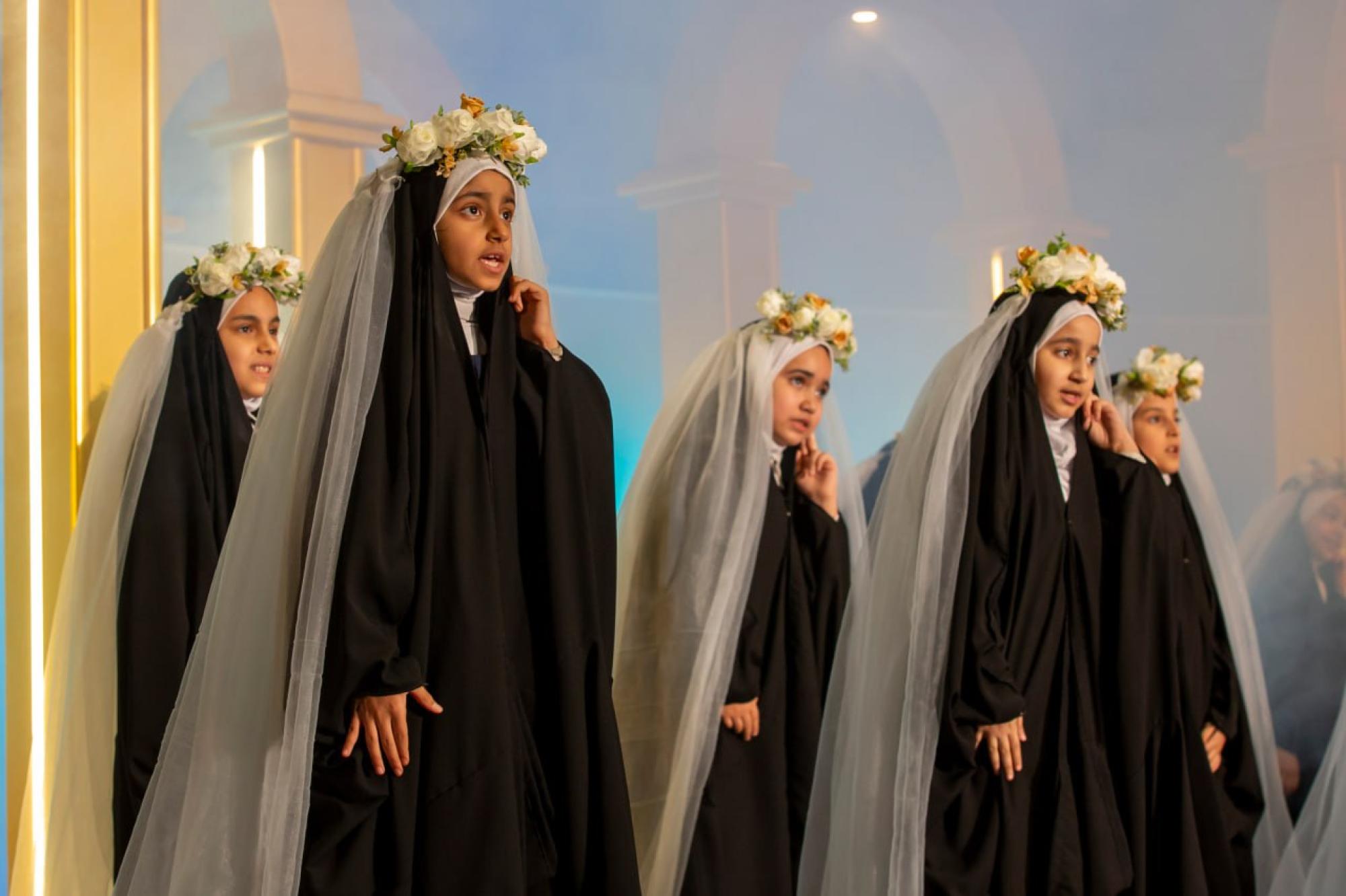 تلميذات مدارس كربلاء يرددن نشيد التكليف ضمن حفل مشروع الورود الفاطمية