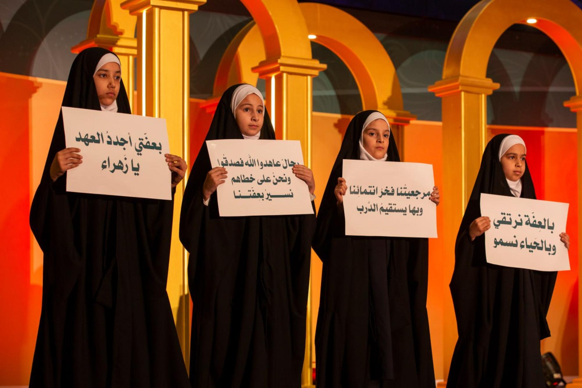 شهدت فعاليات اليوم الأول من حفل التكليف المركزي الثامن لتلميذات مدارس كربلاء، تقديم عرض مسرحي بعنوان (من الخيام إلى الفتوى).