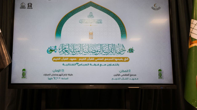 انطلقت في مقر قيادة فرقة العباس القتالية بمجمع العلقمي للزائرين، فعاليات "الختمة القرآنية الرمضانية المرتلة"، والتي يقيمها المجمع العلمي للقرآن الكريم (معهد القرآن الكريم) بالتعاون مع الفرقة.