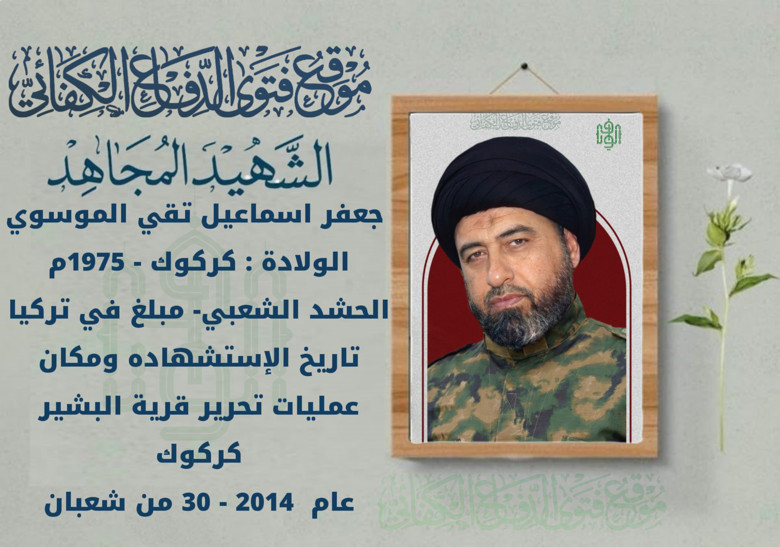 كان خادمًا حسينيًا وخطيبًا ناعيًا، ارتبط بالعلماء حتى دخل الحوزة العلمية في النجف الأشرف عام 2008م، وأكمل المقدمات وشرع بدراسة المكاسب والكفاية، ولبس لباس أهل العلم عام 2013م. أتقن اللغة التركمانية فكلّفه مكتب المرجع الراحل السيد محمد سعيد الحكيم بالتبليغ في تركيا. ومع صدور فتوى الدفاع عام 2014م عاد على عجل عبر لبنان ثم أربيل إلى كركوك فالنجف، والتحق بواجب الدفاع عن البشير. استُشهد في كمين بقرية الشمسية يوم 30 شعبان 2014م، وبقي جثمانه في أرض المعركة تسعة أشهر.