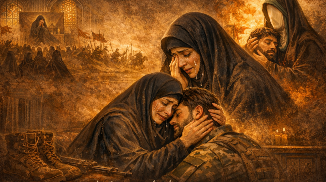 تجولت في الحي وهي تسير على غير هدى، تنقلها الأزقة وتقلبها الحيرة، تتساءل بوجع كيف لأم أن تبارك التحاق ولدها بساحة الحرب؟ كيف يمكنها أن تتقبل احتمال فقده؟ هل أنا عاصية أمر ربي؟ هل يغفر الله لي ذنبي وهو من ربط قلبي بالأمومة؟