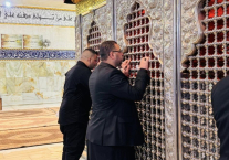 وكان في استقبال الوفد المتولي الخاص للمزار الحاج حسن شنون، الذي رحب بالسيد القائد مباركاً تسنمه منصبه الجديد ومتمنياً له التوفيق في مهامه، فيما تضمنت الزيارة جولة في أروقة المزار ومتحفه للاطلاع على معالمه التاريخية.