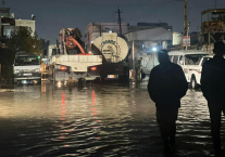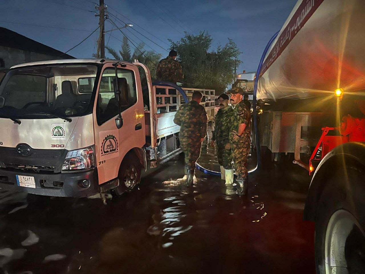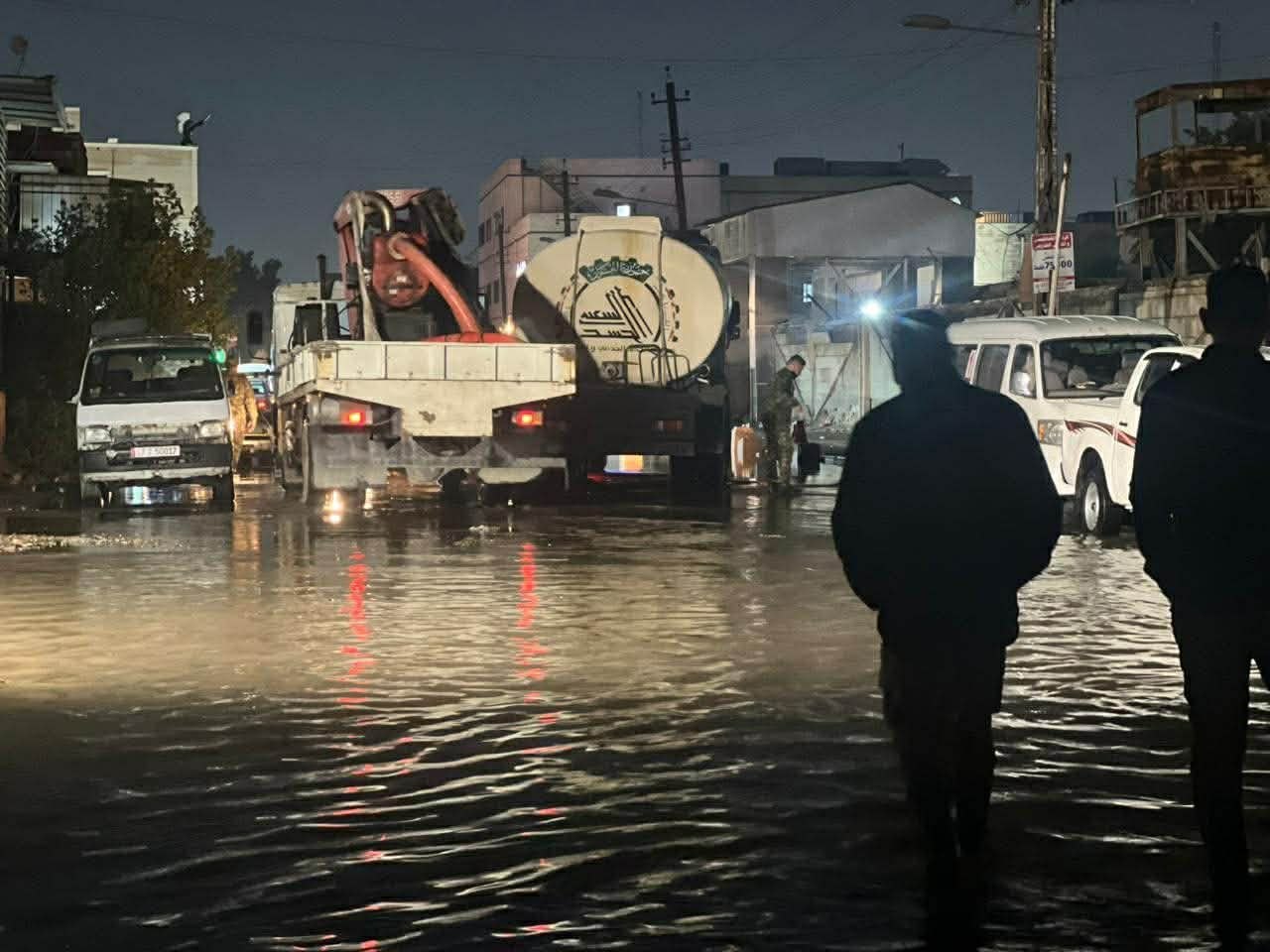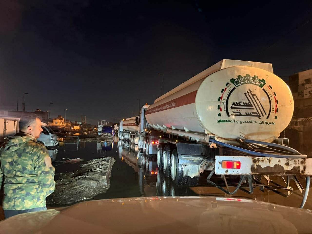 اذ واصل عمليات سحب مياه الأمطار في جانب الرصافة ببغداد لتخفيف معاناة المواطنين وفتح الطرق المغلقة