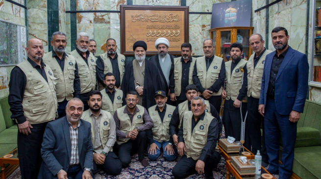 جاء ذلك في أثناء استقبال سماحته تجمع الغيرة الحسينية من مدينة الزعفرانية في العاصمة بغداد، واستماعه لشرح مفصل من الوفد عن جهود جمع التبرعات لمساندة الشعبين الإيراني واللبناني.
