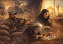 وإحدى تلك الصور قد رسمها ذاك الشهيد الذي تزوج ولم يُرزق بطفل على مدى أربع سنوات، وقد عجز الطب عن تحقيق رغبته ورغبة أهله وزوجته، وما أن سمع بفتوى المرجعية العليا ودعوتها للدفاع الكفائي، لم يهدأ له بال حتى التحق بساحات الجهاد ممتثلاً نداء نائب إمام زمانه (عجل الله تعالى فرجه الشريف)، مُدافعاً عن مقدسات هذا الوطن وحرماته، فخرج وكأنه كان على موعد معلوم، إذ وقف بباب البيت مخاطباً أهله: