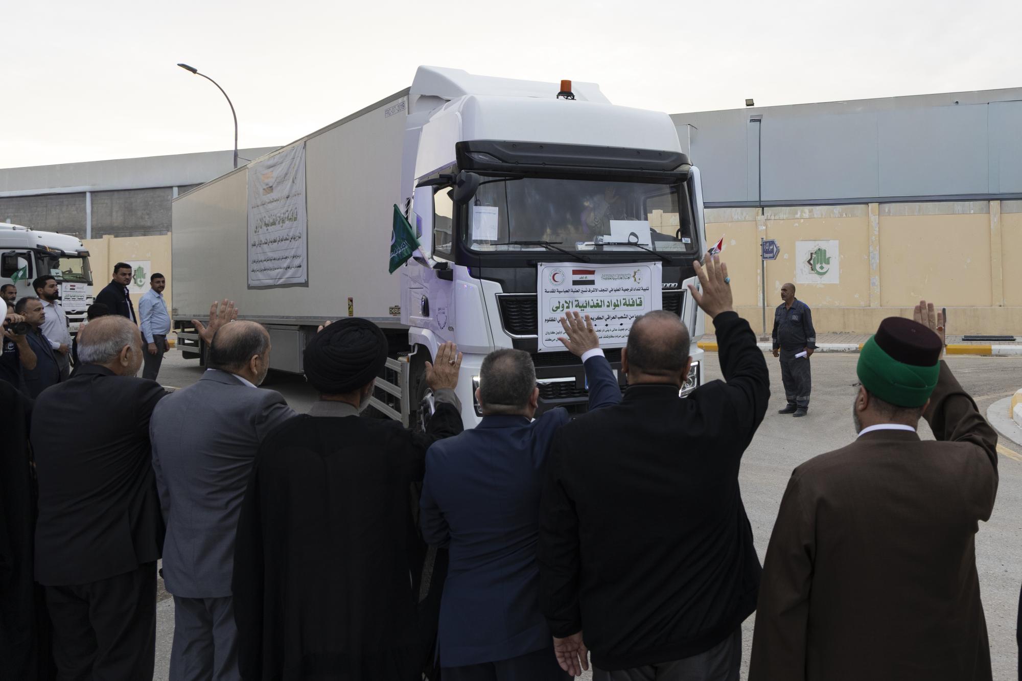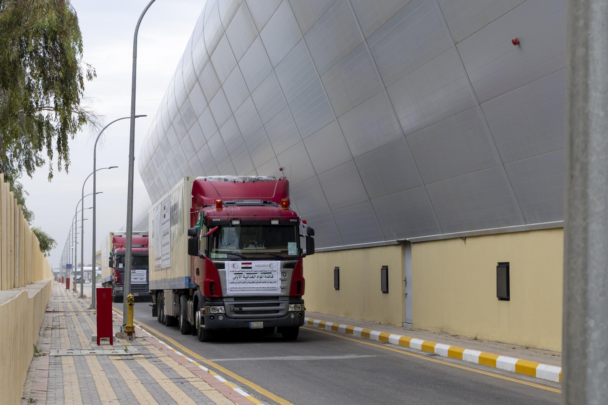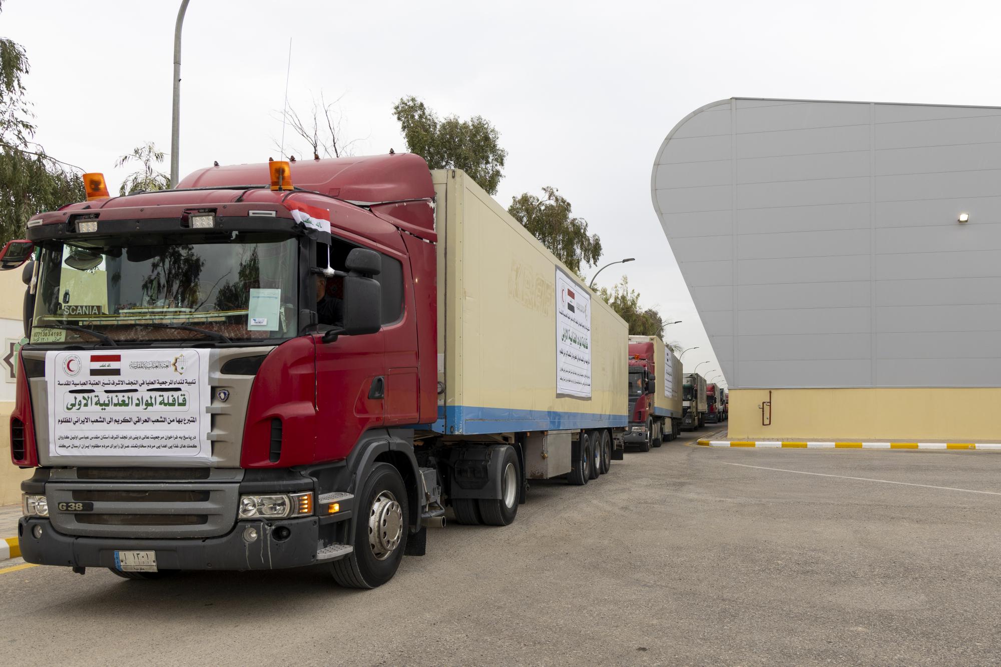 تحمل 690 طنًّا .. العتبة العباسية المقدسة ترسل قافلة المساعدات الأولى ضمن حملة دعم الشعب الإيراني