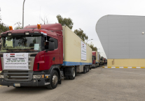 وأوضح أنّ "القافلة تضمّ 38 شاحنة محمّلة بـ690 طنًّا من المساعدات الإنسانية، تشمل 670 طنًّا من المواد الغذائية الأساسية، إلى جانب 20 طنًّا من المستلزمات الطبية الضرورية".