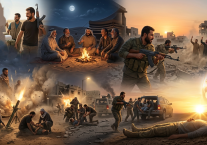 لم نلبس كل الليل إذ بقينا مع قائد السرية (عابس) بسمر ليل جهادي، نناغي نسائم هواء الميادين بضحكاتنا، فيرتشف النسيم منها شذى، ليزيل عن ذراته روائح البارود ويتطهر به من أنفاس العدو. كان القائد (عابس) أكثرنا ضحكاً، اختتم ضحكته بقوله: «لأول مرة أضحك هكذا، اللهم اجعلها ضحكة خير .. أطبقنا أجفاننا نائمين لنستيقظ على صوت مدو، فيه دوي حقد وخسارة.. إنه الغدر مجدداً، إنها الذلة التي ترهقهم.. يولون أدبارهم ويخشون مباشرة المواجهة.. حان موعد الرحيل إلى رغد الوالدين، الزوجة، الأولاد.. لكنا حثثنا الخطى مسرعين إلى (المشجب)، لننصر النفس بجهادها الأكبر.