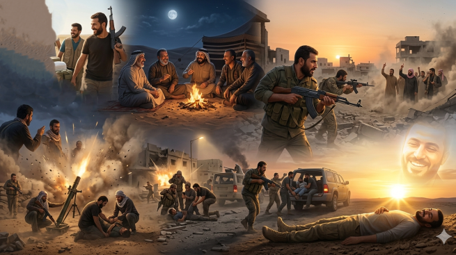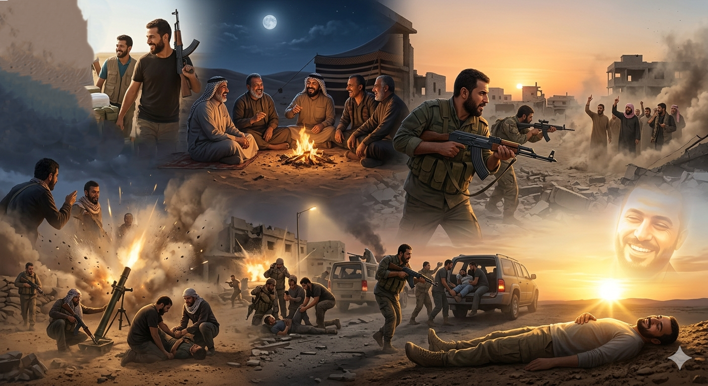 كُنا نتجه باتجاهات مختلفة لمساعدة بقية صنوف، الحشد تتباين أسماؤنا فقط وتتساوى أهدافنا وقلوبنا، إننا أشداء على الكفّار، رحماء بيننا.. لا يفصلنا الكثير عن نقطة حوصر فيها بعض المجاهدين، فقال القائد (عابس):