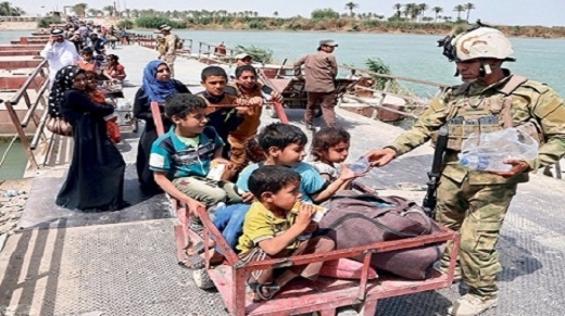 في الإنتظار وجد النازحين عيونٌ من نار، في وجوه رجالٌ من ورد، في يمينهم يحملون طفلاً أنهكه البكاء، وفي شمالهم سلاحأً أرعب الداعشيين، وجدوا الإنسانية بهيئة رجال، شاركوهم الأسى وحملوا كبارهم.