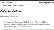 نشر موقع صحيفة (The New York Times) بتاريخ 20 / مارس / 2005م مقالا بعنوان (نوبل للسيستاني).